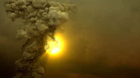 column of co2 emissions smoke from explosion on dirty sky with sun - industrial 3D illustration