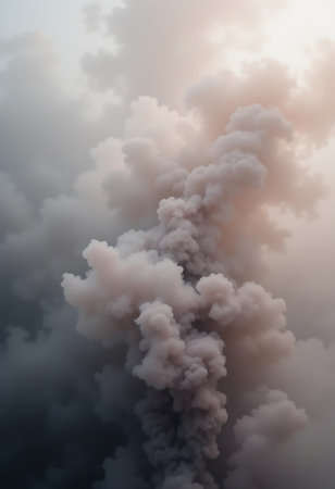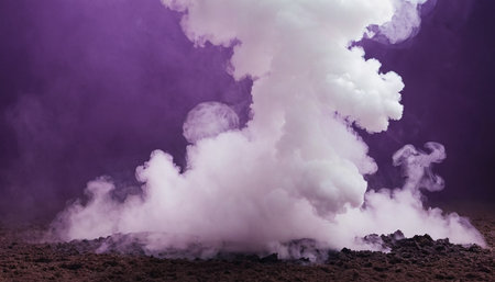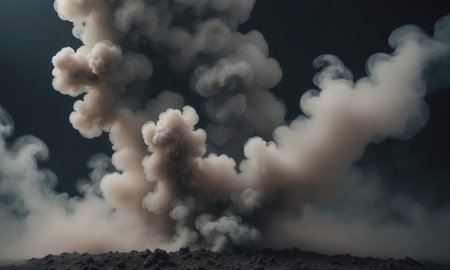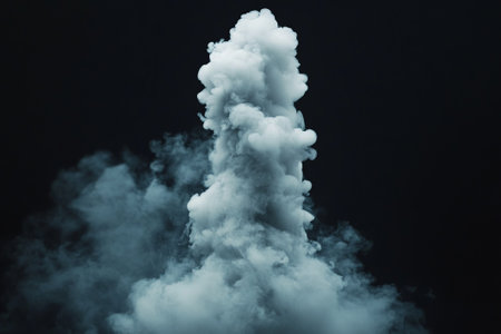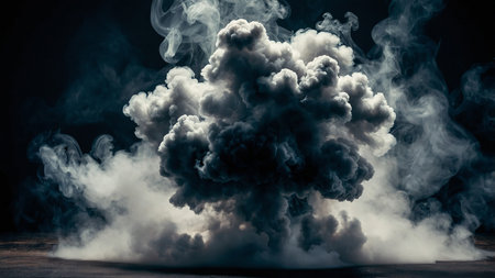A dense, dramatic smoke cloud billowing against a stark dark backdrop, showing an ethereal and captivating visual effect with intricately swirls and patterns, evoking mystery and intensity.