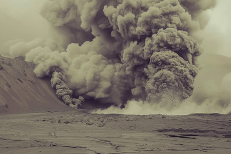 A breathtaking shot of a landscape under the smoke of an explosion during the day