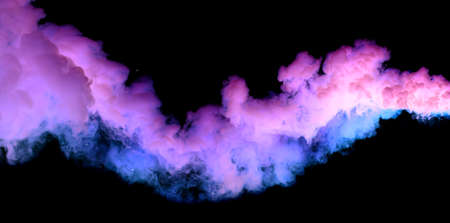 Dense multicolored smoke of pink, orange and purple colors on a black isolated background. Background of smoke vape