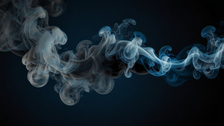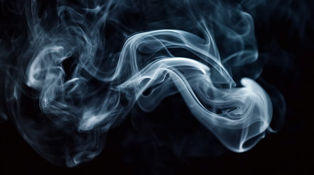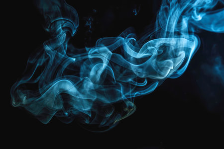 A captivating image of ethereal blue smoke swirling against a dark background, creating an intriguing and mysterious atmosphere ideal for various design projects.