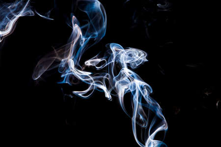 Smoke isolated on black background. Abstract blue smoke swirls on black background.