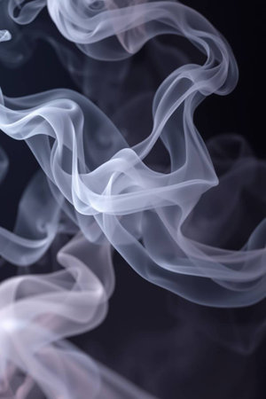 Delicate tendrils of smoke rise and twist in fluid motions, creating captivating forms against a muted backdrop. This visual speaks to the beauty of ephemeral moments. Generative AI.