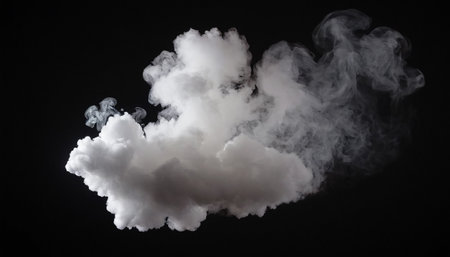 This high-quality image showcases a soft white smoke cloud on a black background, perfect for enhancing graphic design, photography, or creative projects with a touch of elegance and mystery.