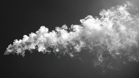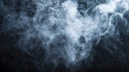 Ethereal white smoke steam swirling gracefully against a pitch black backdrop for artistic projects