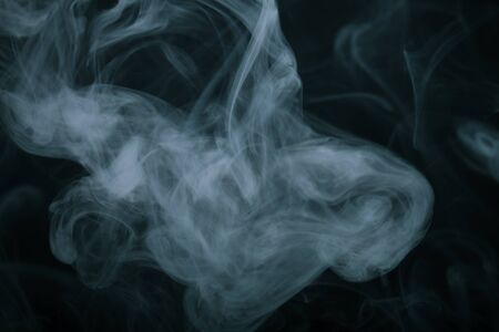 Abstract background of chaotically mixing puffs of smoke on dark background. Concept of alternative non-nicotine smoking. Color smoke on dark background. E-cigarette. Blurry image, soft focus. Vaping
