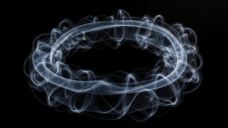 Surreal artistic depiction of smoke ring with abstract background, mysterious concept.