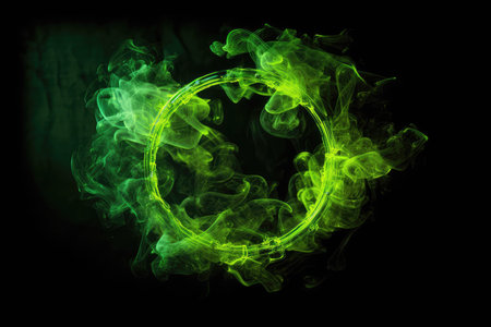 Circle Of Neon Chartreuse With Smoke On Bright Background