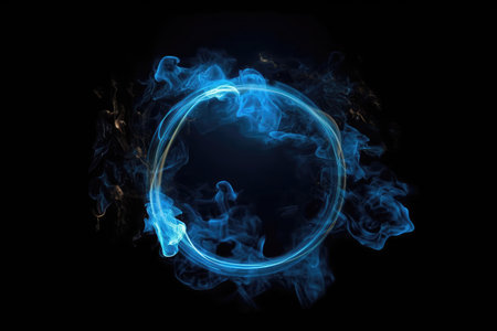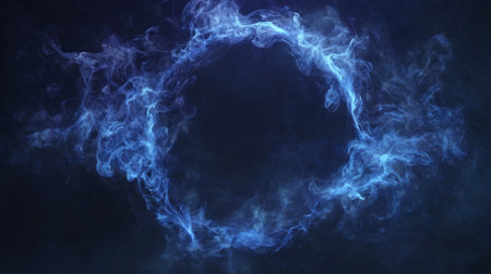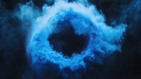 A captivating blue smoke circle set against a dark backdrop, offering an abstract and ethereal look perfect for creative projects and digital designs.
