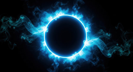 Circle Of Neon Electric Blue With Smoke On Dark Background