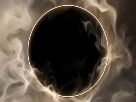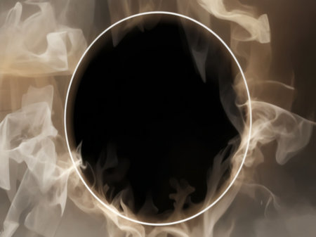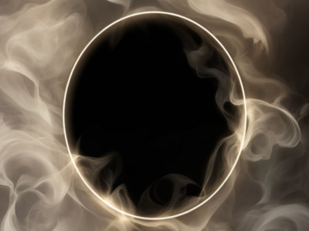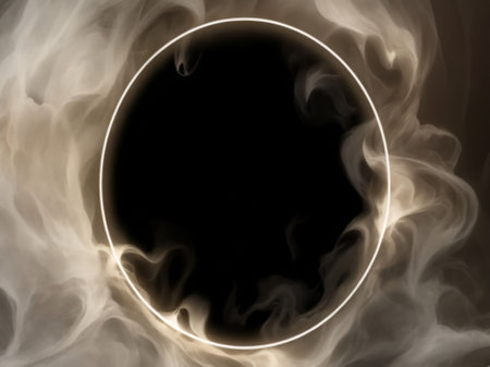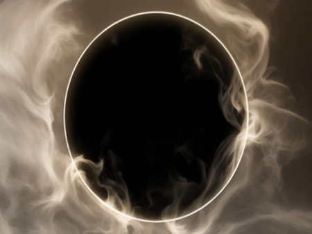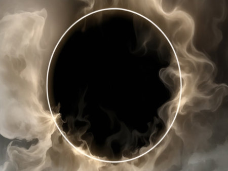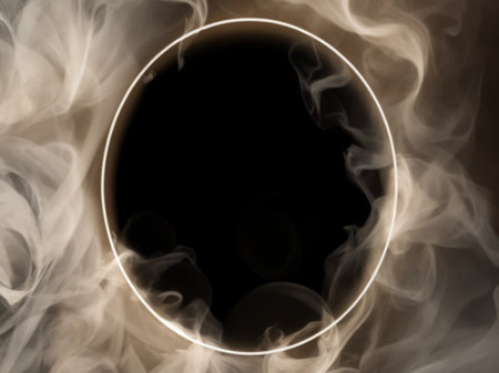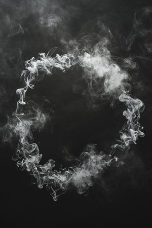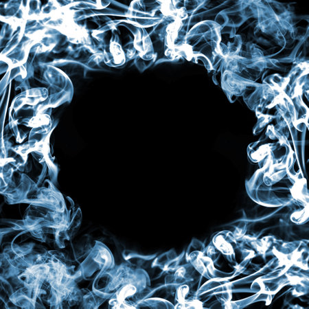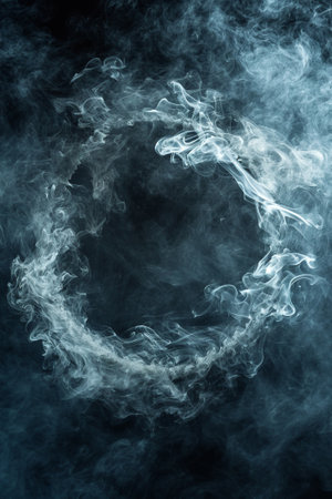 White smoke on a black background with a round frame in the center
