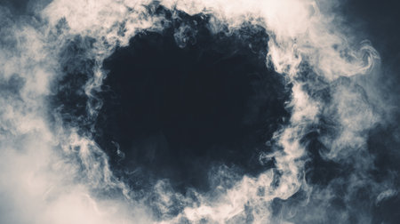 Shadowy horror frame, black swirling smoke in circular shape. Generative