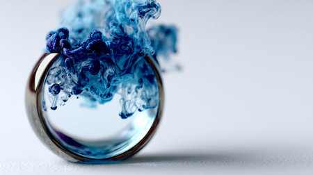 close up of blue ink in water on white background with copy space