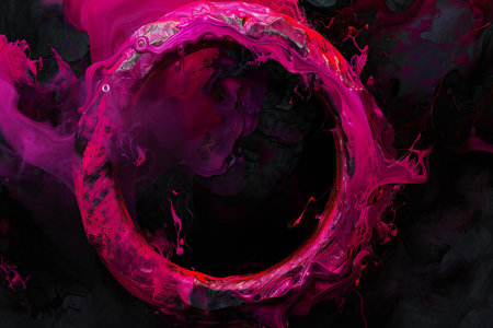A mesmerizing neon circle encompassed by vibrant and colorful smoke, ideal for creating eyecatching designs