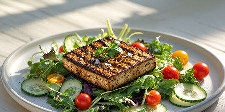 AI Generated. Healthy Grilled Tofu Steak with Fresh Salad