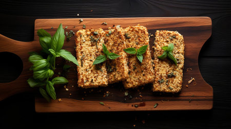 quinoa slices are artfully arranged on a rustic wooden tray, showcasing their delicate texture and nutty color in this stunning top-view shot, perfect for healthy food enthusiasts and culinary creatives looking for wholesome meal inspiration and nutritious snack ideas. ai generated