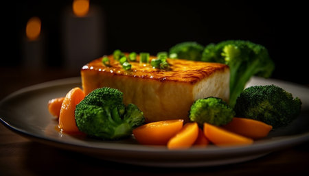 Grilled broccoli and carrot plate, healthy lunch option generated by artificial intelligence