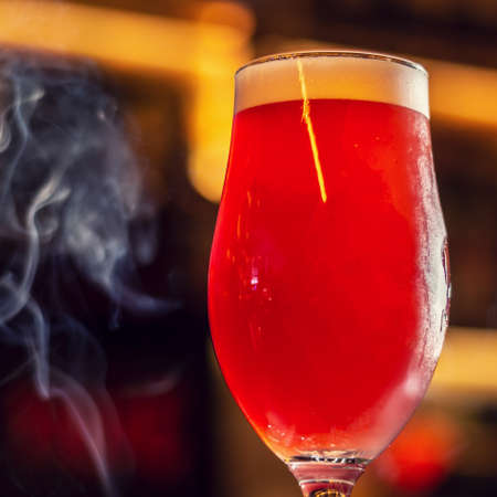 Close-up of smoke swirling out of a wine glass, highlighted by warm golden light, blending art and elegance in a creative composition