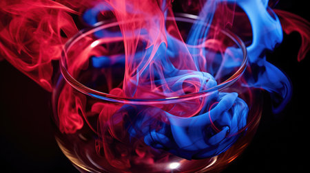 container red and blue smoke illustration mix intertwine, calming visual, stimulating close container red and blue smoke