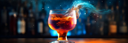 Bright cosmic cocktail in tall glass on bar top, with colorful turbulence, AI generated