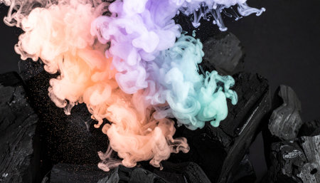 This captivating image features vibrant smoke swirls in a spectrum of colors against a dark background, creating an enchanting and artistic visual.