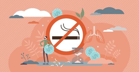Quit smoking vector illustration. Stop cigarettes tobacco addiction decision tiny persons concept. Fight against unhealthy smoker habit for medical and money saving reasons. No harmful nicotine sign.