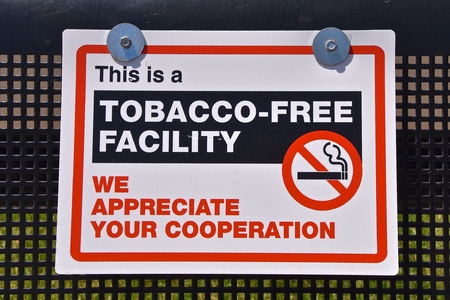 Sign indicating a building is a tobacco-free, no smoking.