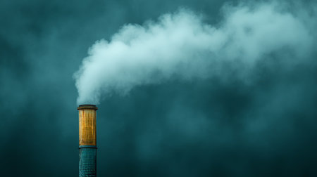 Climate change: An industrial smokestack emitting thick smoke into the sky, symbolizing the contribution of industrial emissions to climate change