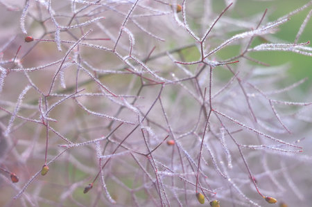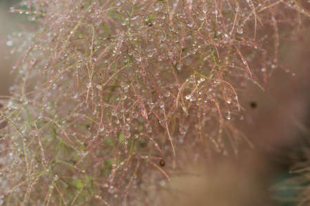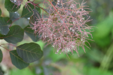 European smoketree (Cotinus coggygria) flowers macro with water drops
