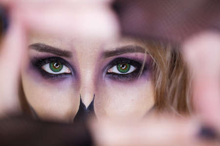 halloween bright make up. close up photo.