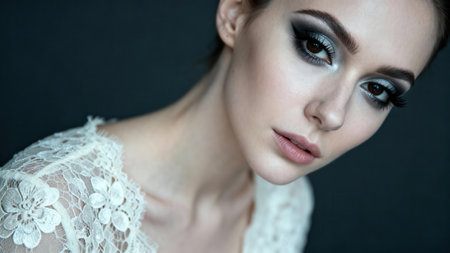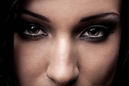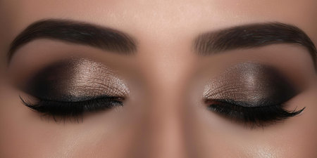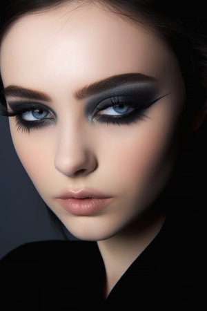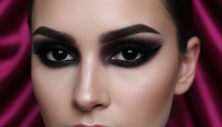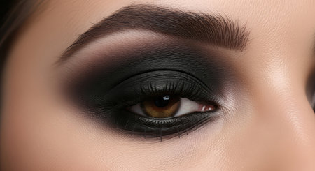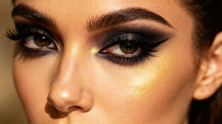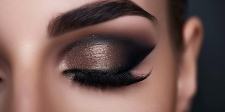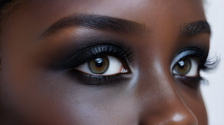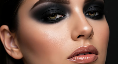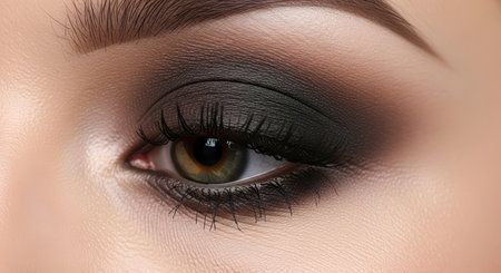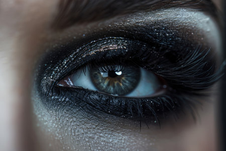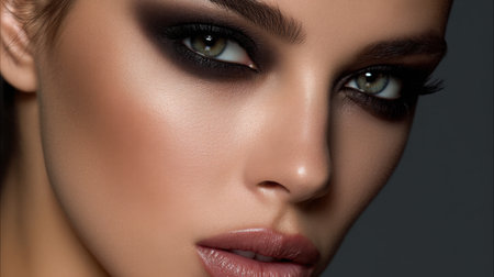 Exquisite close up of a womans eyes adorned with dramatic smokey makeup