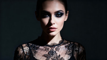 Mesmerizing Model Stuns with Bold Smokey Eyes in a Dramatic Setting. Concept Bold Smokey Eyes, Mesmerizing Model, Dramatic Setting, Glamorous Makeup, Striking Photoshoot