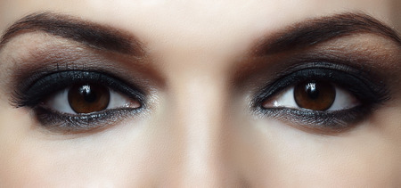 beautiful female brown eyes with bright makeup