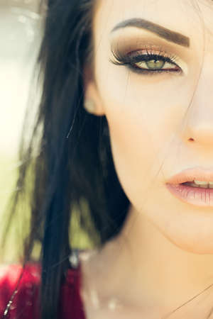 Close-up portrait of young beautiful woman with professional make-up