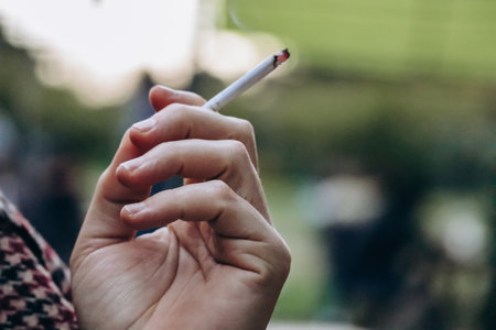 A selective focus shot of a female smoking cigarets - the concept of addiction