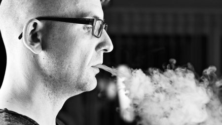 Close-up photo of a young man smoking a cigarette