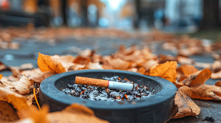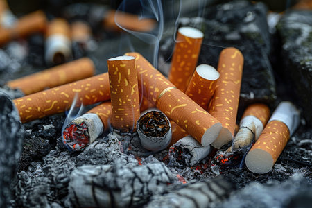 This captivating macro shot highlights an extinguished cigarette surrounded by ashes, capturing the remnants of smoking with dramatic lighting and texture.