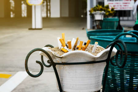 Dubai, United Arab Emirates - april 28, 2022 ash bin or tray with different variety of cigarette buds