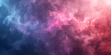 Vibrant swirls of colorful smoke in the air, with hues of pink, blue, and purple blending together, creating a dramatic and artistic visual effect.