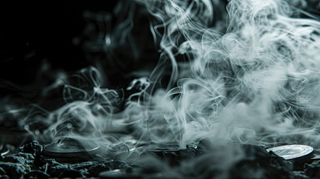 Close up of a pile of smoke from a cigarette on black background