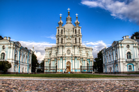 view on smolny cathedral on a sunny day. city landscape