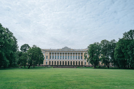 The northern facade of the Mikhailovsky Palace. Mikhailovsky Garden.