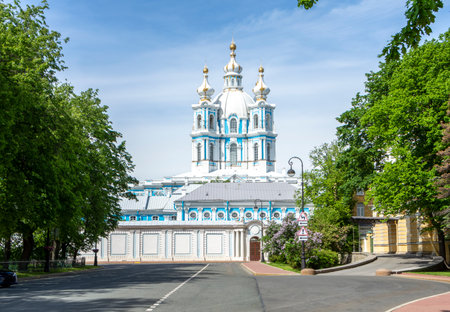 Smolny Cathedral in St. Petersburg in spring