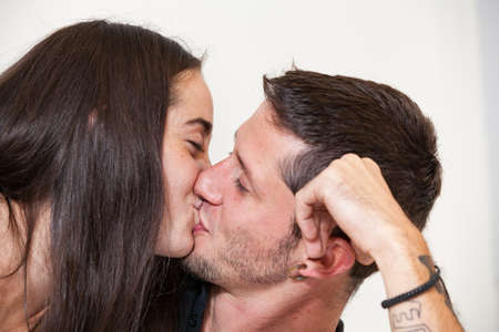 love concept, close up of young couple kissing