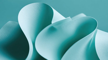 This abstract image features smooth, curved textures of aqua paper, showcasing modern aesthetics perfect for creative design projects and artistic backgrounds.