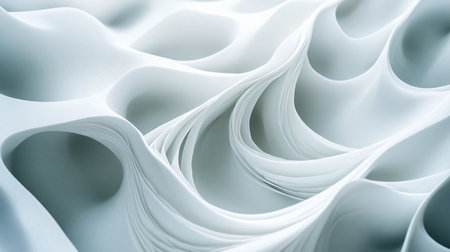 This image captures the graceful flow of curved paper sheets, creating smooth waves and patterns in soft light, perfect for abstract art and design projects.