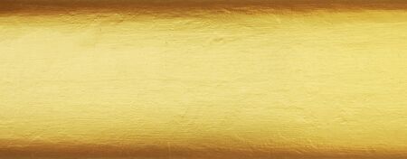 A horizontal, abstract background of a smooth, brushed gold metallic surface. The texture is subtle and linear, with a soft gradient transitioning from a bright, warm yellow at the top and bottom edges to a deeper, richer brown in the center. The overall impression is luxurious and elegant.