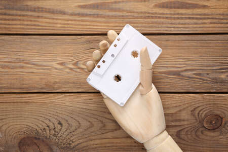 Portrait of a beautiful young woman in a white sweater on a beige background