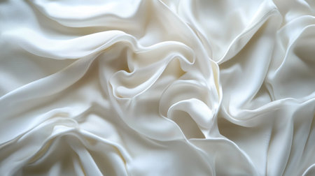 A beautiful closeup of soft cream fabric showcasing gentle waves and elegant drapes. Ideal for backgrounds, textile design, and artistic visual projects.