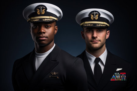 An officer in uniform displays a focused expression Conveys security and authority. Concept Portrait Photography, Uniform, Authority, Professionalism, Confidence